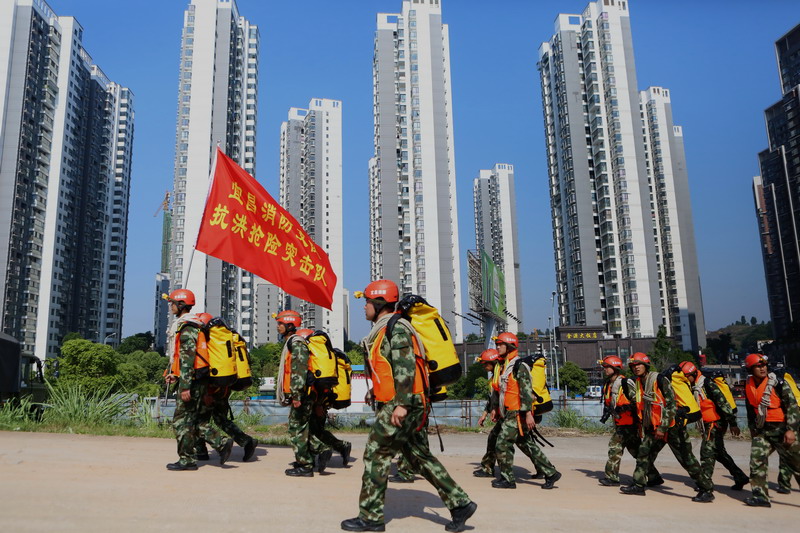 ? ? 5月19日上午,宜昌市消防支队组织8个突击队100余名官兵开展抗洪抢险救援演练,进一步增强全体官兵执勤备战意识,做好汛期抗洪抢险准备工作。