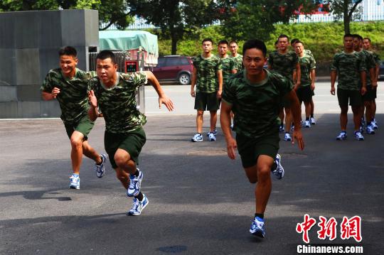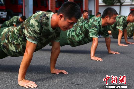 7月20日,在37℃的高温下,湖北宜昌市消防支队特勤中队官兵用汗水锤炼过硬的本领,磨砺顽强的意志。当天上午,该中队官兵进行了百米冲刺登楼、单双杠、模拟楼层灭火操等训练科目。而在模拟楼层灭火操训练中,消防官兵还要穿上比棉袄还厚、重达十余公斤的战斗服进行训练。特勤中队副中队长黄翔介绍,特勤消防中队一般承担急难险重的灭火救援任务,训练的强度和标准要高于普通中队,因此官兵们除了出警和节假日外,其它时间就是各类体能、技能和操法训练,遇到特别炎热的天气会适当的缩短训练时间,但训练要求和标准不会降低。