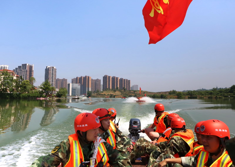? ? 5月19日上午,宜昌市消防支队组织8个突击队100余名官兵开展抗洪抢险救援演练,进一步增强全体官兵执勤备战意识,做好汛期抗洪抢险准备工作。