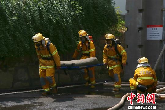高温下的消防官兵穿比棉袄厚的战斗服训练