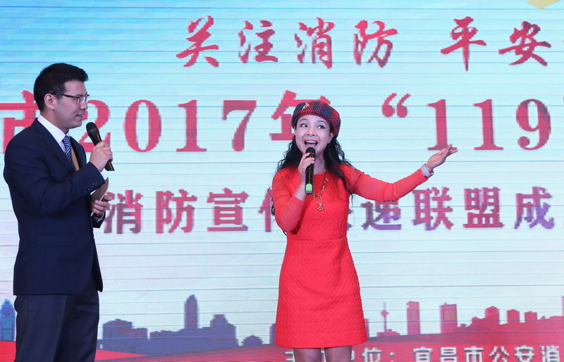 在今年开展的“全民消防我代言”活动中,宜昌社会各界共300人被聘为消防公益代言人,在当天的活动中,他们中的部分代表获颁了聘任证书。值得一提的是,被称为“歌坛怪杰”的宜昌籍歌手陈涓也是消防公益代言人,活动现场她还应邀现场唱起了“消防版”《六口茶》。陈涓表示,虽然她是一名消防新人,但今后会努力将消防安全传播出去,让更多人关注消防、支持消防。